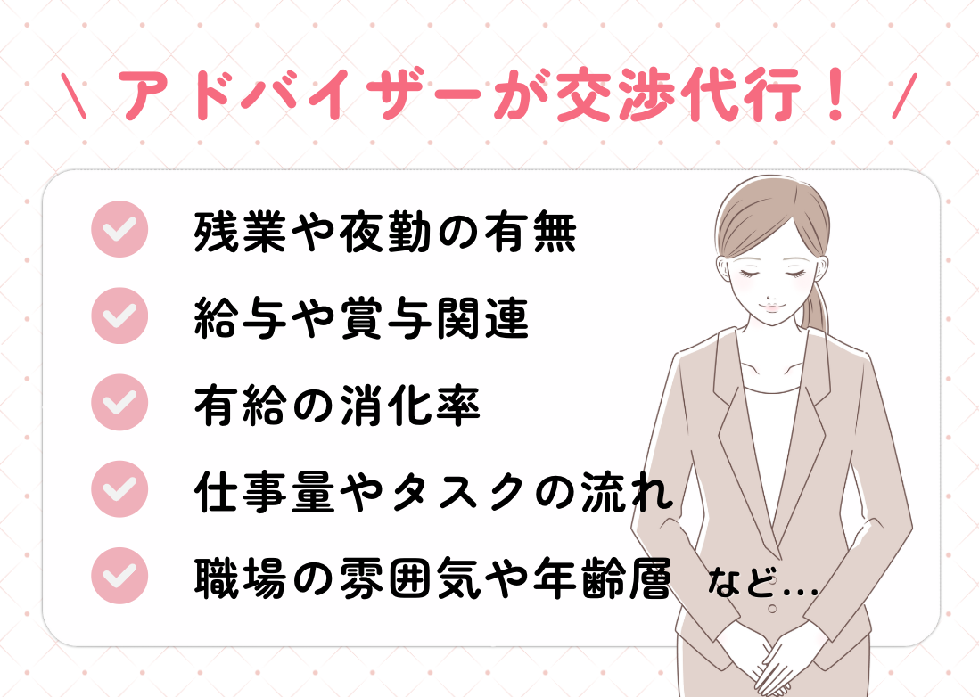 転職後のアフターサポートもありますので、実際に勤務してみて聞いた条件と違うなどあればご遠慮無くご相談ください!対応致します!