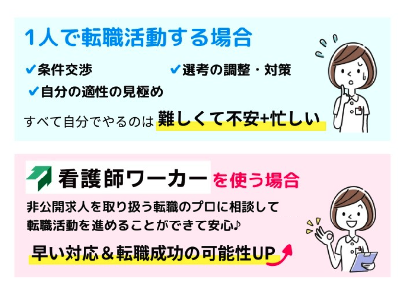 早急に人材を必要としている病院や、好条件な待遇の病院なども看護師ワーカーに集まりやすいみたいで、